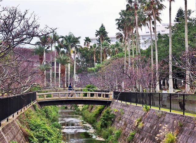那覇市の中心部に位置し、長年市民に愛され続けている与儀公園。特に2月頃には、沖縄固有のカンヒザクラが咲き誇る桜の名所として知られ、「那覇さくらまつり」の会場にもなります。散策路が整備されており、都会の中のオアシスとして、多くの人がウォーキングや休憩に利用しています。